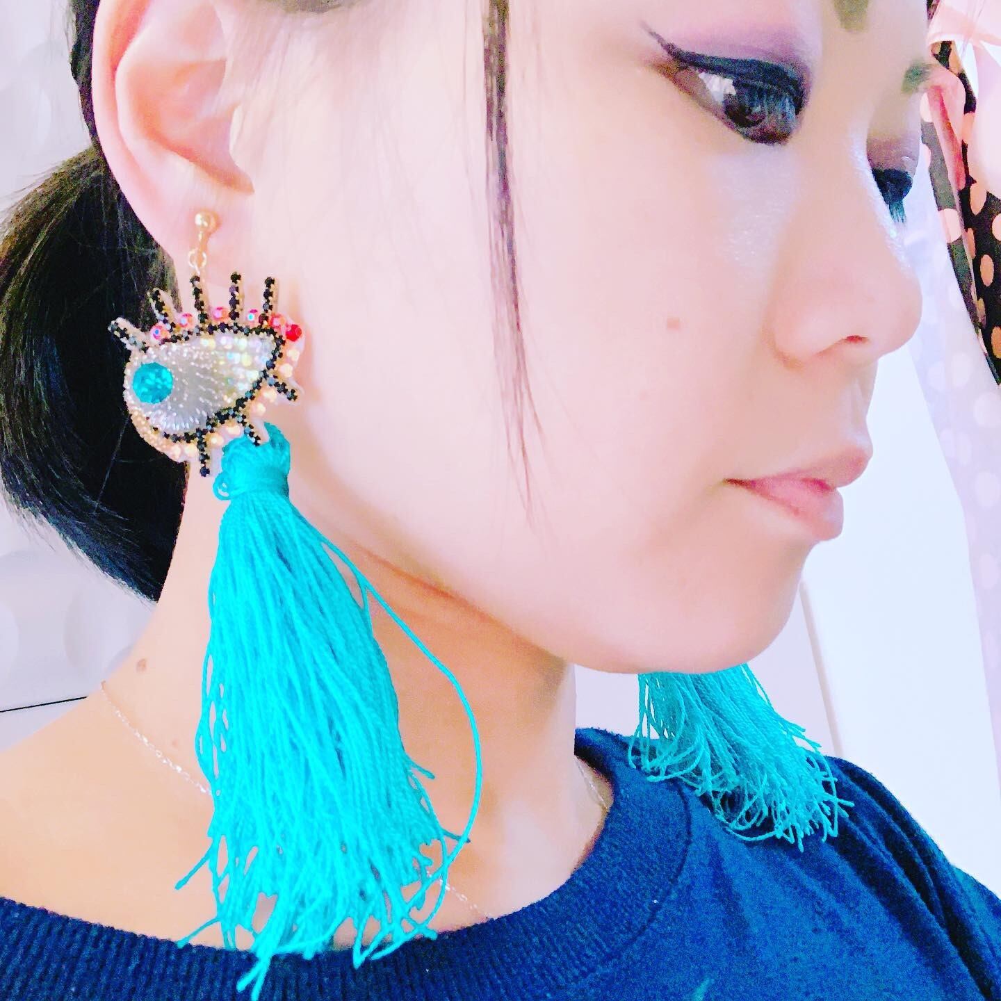 眼をイメージしてラインストーンなど使用、モチーフを作成しました。