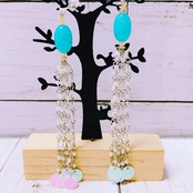 小さなパールでタッセルを作りブルー(マーブル)のパーツと組み合わせました。タッセルは重くなくサラサラと揺れる感じです。